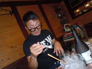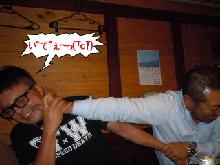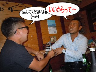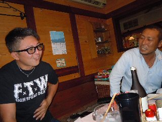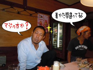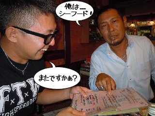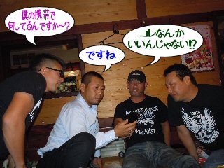 ![]() SHIGE君の携帯を覗き見るまあ君 |
