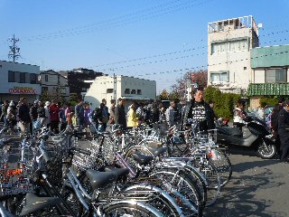![]() いつもは無人の駅に並ぶ人たち |