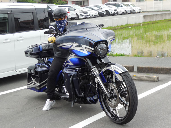 ![]() 車4台分のスペースを占領するデカイバイクに |