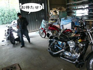 岩ちゃんを待つ間バイクいじりですw |