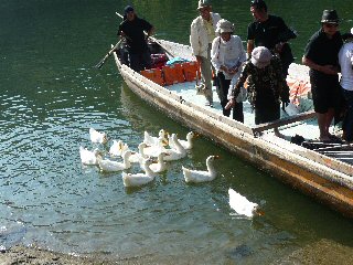 アヒルは 船に乗った人が貰えるせんべいのおすそ分けを目当てに来るそうです! | |
