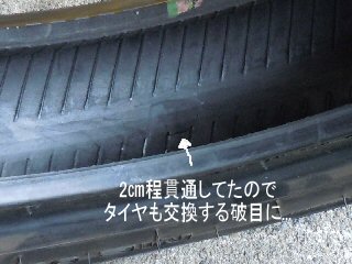 3月に前後ともタイヤ交換して まだ1700kmくらいしか走ってなかったのに... | |